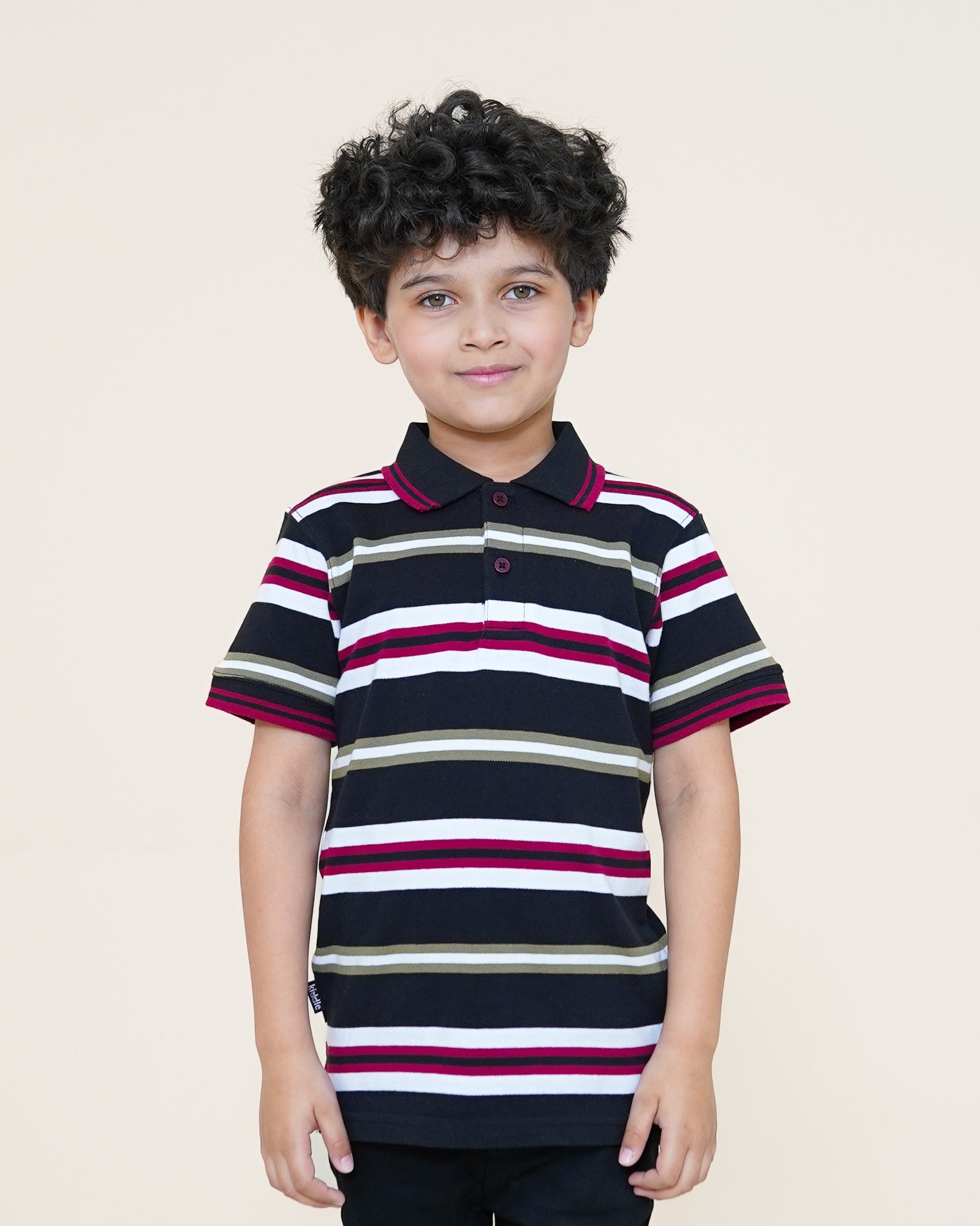 Retro Striped Polo – Black